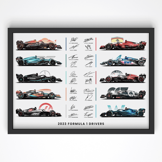 Formula 1 poster sa bolidima i autogramima vozača
